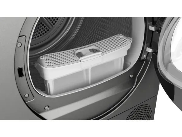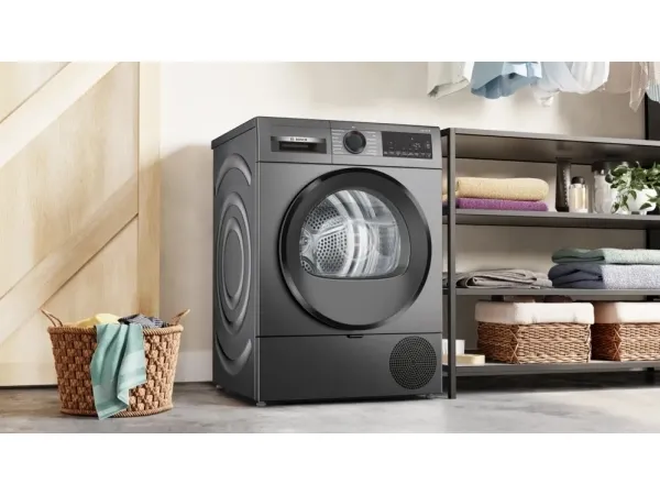 Bosch Serie 6 WQG243DR10. Appliance placement: Freestanding, Loading type: Front-load, Drying system: Heat pump. Rated capacity: 9 kg, Condensation efficiency class: B, Drying programs: 40min, Bedding, Blouse/shirt, Cotton, Cotton eco, Eco, Hygienic drying, Mix, Quick, Sport, Towel,.... Delay start (max): 24 h, Feet adjustment: 1.5 cm. Energy efficiency class: C, Energy consumption per 100 cycles: 110 kWh, Energy consumption: 1.1 kWh. Depth: 613 mm, Width: 598 mm, Height: 842 mm