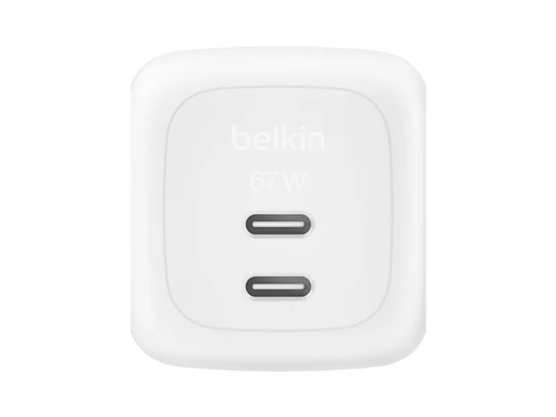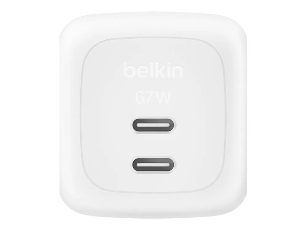 Belkin BoostCharge Pro - Strømadapter - GaN - 67 watt - Fast Charge, PD 3.1/PPS - 2 utgangskontakter (2 x USB-C) - hvit