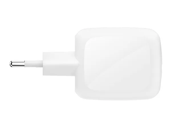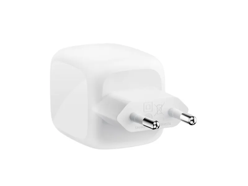 The Belkin BoostCharge Pro power adapter is designed to provide efficient and reliable charging for a variety of devices including tablets, smartphones, smart watches, headphones, and laptops. With a power output of 67 W and the ability to simultaneously charge two devices, this adapter meets the demands of modern technology users. Utilizing GaN technology, it remains compact and lightweight, making it perfect for on-the-go usage. Crafted from 90% recycled post-consumer plastic, this wall charger highlights sustainability alongside performance. The Belkin SmartProtect feature ensures safe charging for all your devices, while the inclusion of Power Delivery 3.1 and PPS technology allows for fast charge capabilities, significantly reducing downtime. This power adapter epitomizes efficiency without compromising environmental responsibility.