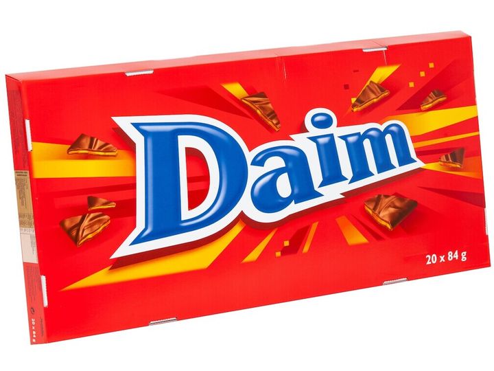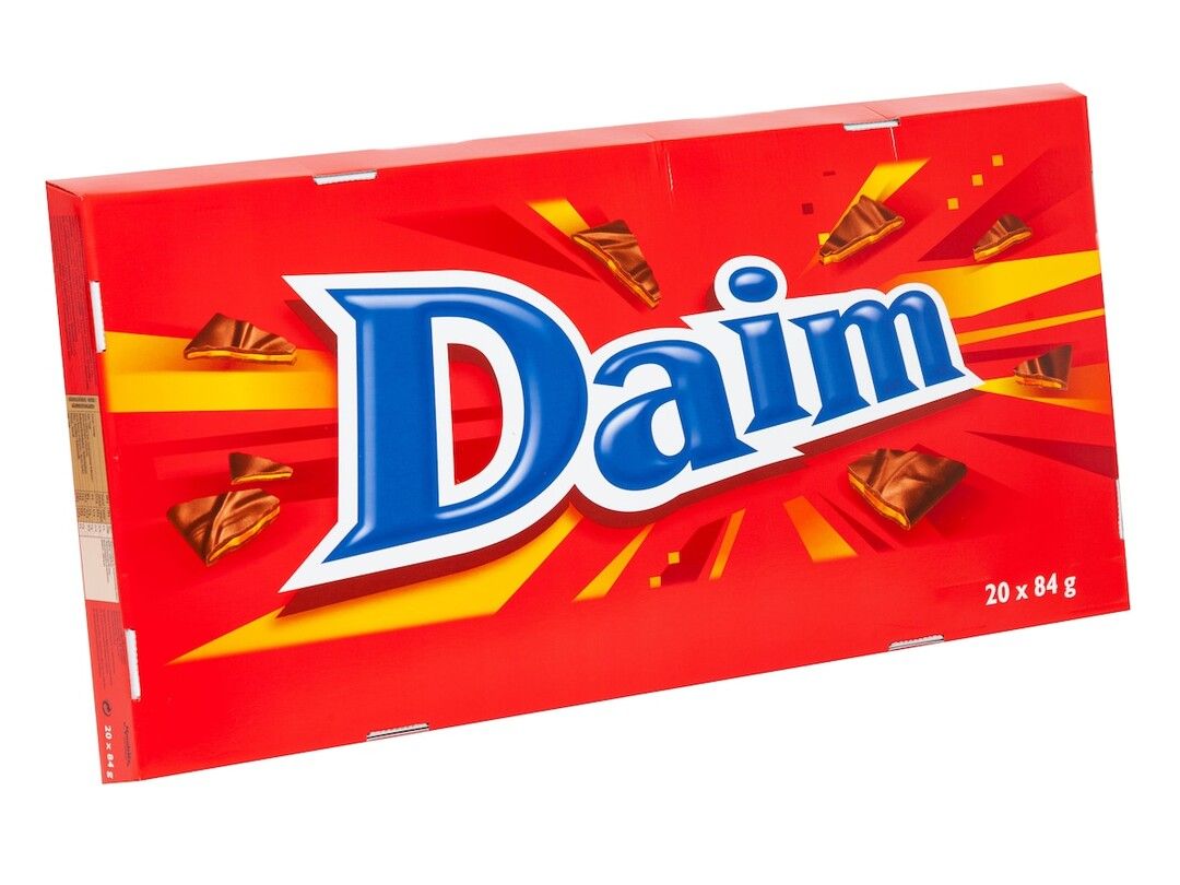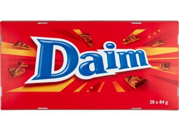 Den kæmpe XL pakke med Daim indeholder 20 af de populære barer af hver 84g. Daim har en kerne af hård karamel, som gør den uimodståelig at bide i, og er overtrukket med et fint lag af mælkechokolade.