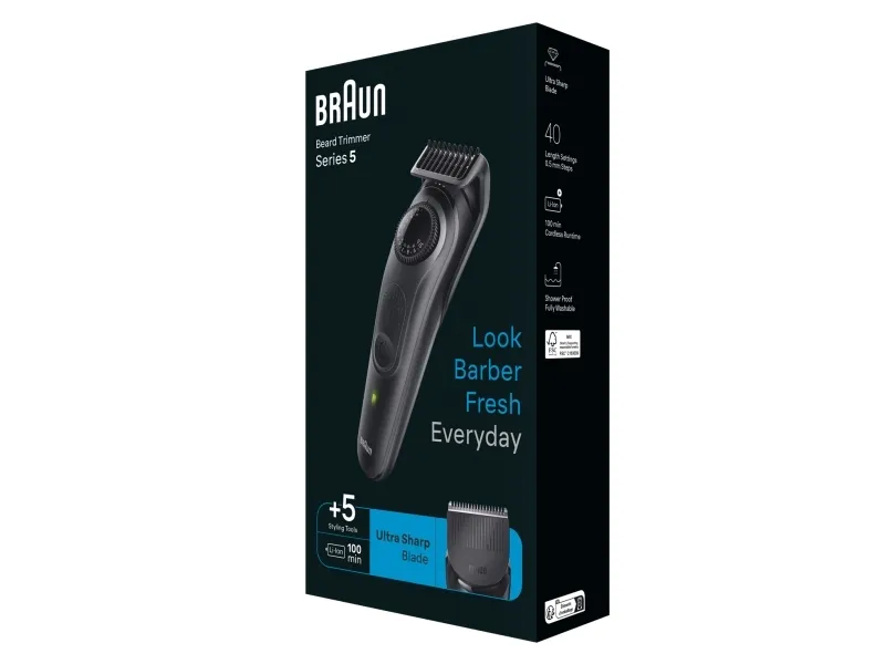 Braun BeardTrimmer 5 BT5430, Batteri, Sort