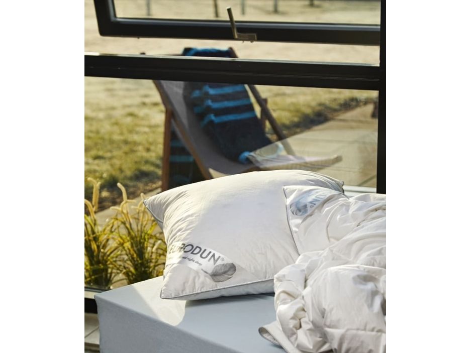 Eurodun Moskus Summersoft 200x200 er en luksuriøs Sommer/helårsdyne, der er perfekt til dig, der sveder meget om natten. Den er fyldt med 90% moskusdun og 10% små fjer, som giver den et let, blødt og lækkert touch. Denne dyne er certificeret Oeko-tex Standard 100 og Downafresh, hvilket giver dig den tryggeste søvn. Dunene regulerer kroppens temperatur, så du holdes komfortabelt kølig, selv i de varme nætter. Den hvide farve gør den stilfuld og elegant, og med CUIN på 800 har den en stor bæreevne. Eurodun Moskus Summersoft 200x200 er en let dyne, der giver dig den bedste nattesøvn. Er du en varm person er den perfekt til helårsbrug.