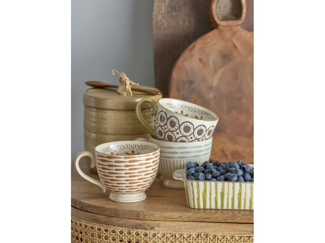 Maple Kruset fra Creative Collection er en charmerende kop med hank i et brunt cirkelmønster. Mix og match med service i andre farver og mønstre for en personlig og hyggelig borddækning og køkkenindretning.