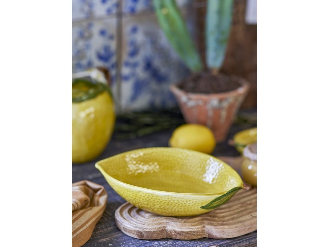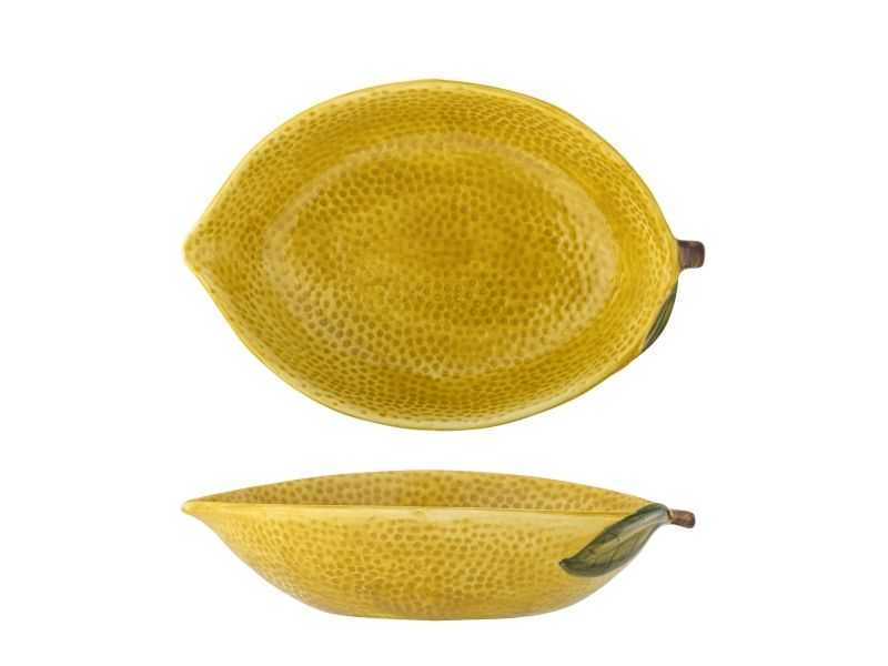 Limone Skålen fra Creative Collection er en solstråle på ethvert bord med sin livlige citrongule farve og karakteristiske tekstur som en frisk citrons skræl. Den hyggelige citronformede skål er ideel til servering eller blot som en farverig dekoration i køkkenet.