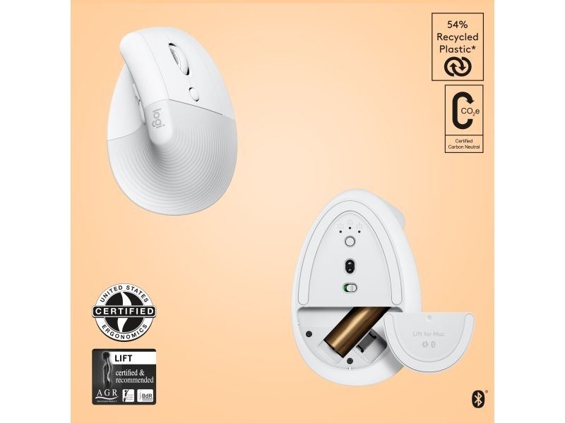 Designet for Mac, laget for komfort. Logitech Lift ergonomisk vertikal mus for Mac er en komfortabel og intuitiv trådløs mus med Bluetooth og stille klikk utviklet spesielt for små til mellomstore hender.