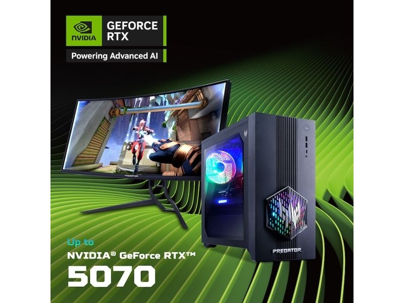 The Acer Predator Orion 3000 PO3-665 is designed for gamers seeking high performance in a compact tower form factor. Powered by an Intel Core Ultra 7 processor with 20 cores and a maximum turbo speed of 5.3 GHz, this personal computer delivers rapid processing capabilities for demanding applications. The 32 GB DDR5 SDRAM and 2.048 TB SSD ensure smooth multitasking and ample storage for games and media. Graphics are enhanced with the NVIDIA GeForce RTX 5070 and 12 GB of GDDR7 SDRAM, providing impressive visuals and performance during gameplay. With a range of connectivity options, including HDMI, DisplayPort, and multiple USB ports, this PC offers flexibility for various peripherals. The robust 850-watt power supply and advanced cooling solutions ensure reliability and efficient operation during gaming sessions.