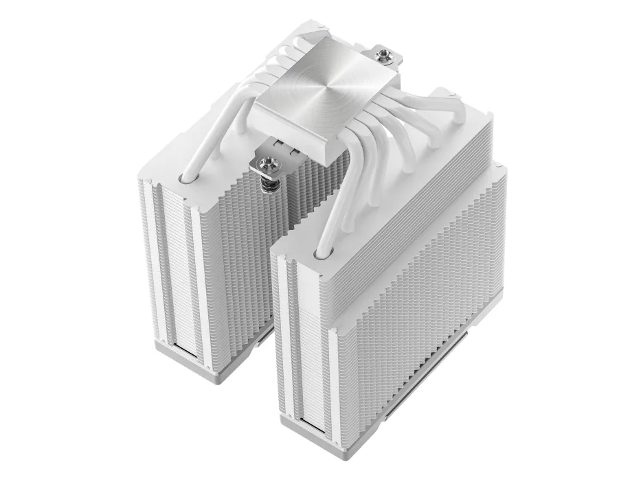 The Deepcool AK620 G2 WH processor cooler offers robust performance for maintaining optimal temperatures during intensive computing tasks. Featuring a Dual-Tower design, it efficiently dissipates heat while minimizing noise levels thanks to its 120 mm fans, which operate at a rotation speed of 0-2000 rpm and produce only 28.87 dBA. The copper base and six 6 mm heatpipes ensure reliable heat transfer, making it ideal for a variety of compatible sockets including LGA1700 and AM5.