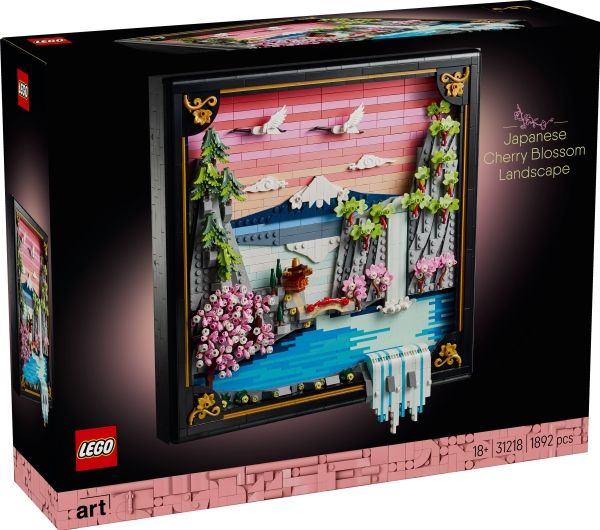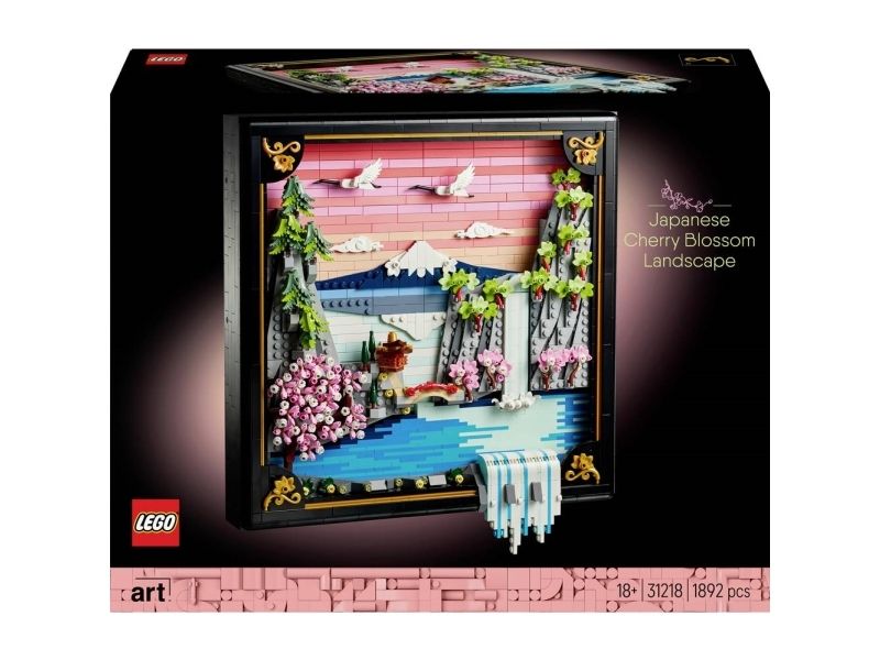 Med byggesettet LEGO® Art Landskap med japanske kirsebærtrær (31218) for voksne kan du fylle hjemmet ditt med fargerik natur. Denne slående, klossebygde veggkunsten i 3D er inspirert av den japanske vårens skjønnhet og Japans Ukiyo-e-kunstnere. Modellen inneholder Fuji-fjellet, et tehus, en bro, en foss, flygende japanske traner og kirsebærtrær, Sangokaku–lønn og japanske skjermtrær.