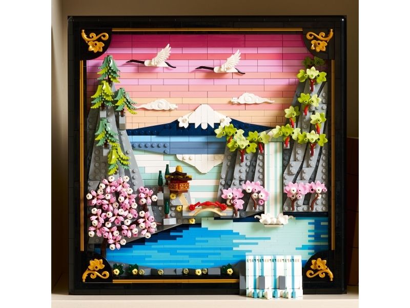 2. EN HYLLEST TIL JAPAN – denne LEGO® modellen av et tradisjonelt japansk landskap rommer Fuji-fjellet, et tehus, japanske traner og kirsebærtrær, Sangokaku–lønn og japanske skjermtrær