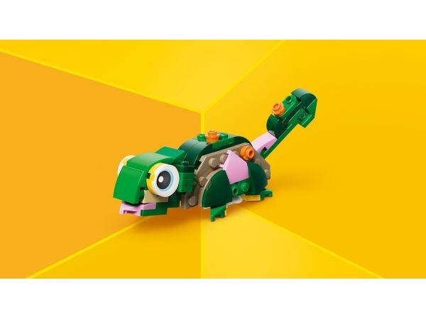 2. UTALLIGE MULIGHETER FOR LATE SOM-LEK – barn kan finne på kreative fortellinger med lekefigurer av ville dyr (modellene kan ikke bygges samtidig): en skilpaddeleke med rosa blomst, en kameleon eller en frosk