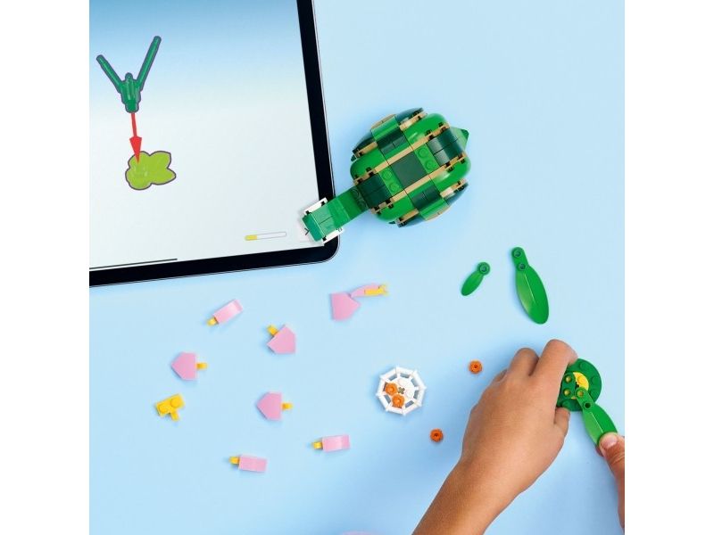 Barn kan bygge en skilpaddeleke med bevegelig hode og munn, sammen med en vakker, rosa vannliljeblomst. Deretter kan de bygge den om til en kameleon med bevegelig hode og hale, eller en froskeleke med bevegelig munn. Når leken er over, kan hver modell brukes som gøyal dekorasjon på rommet.