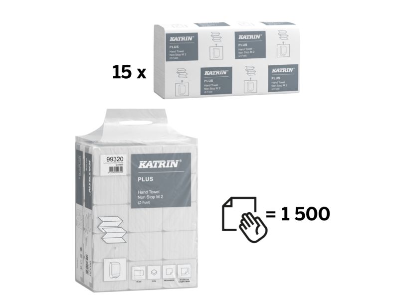 Håndklær Katrin Plus Non-Stop Z-Fold 2-lags L24xB20,3xD8 cm Ny fiber Hvit - (15 pakker x 160 ark)