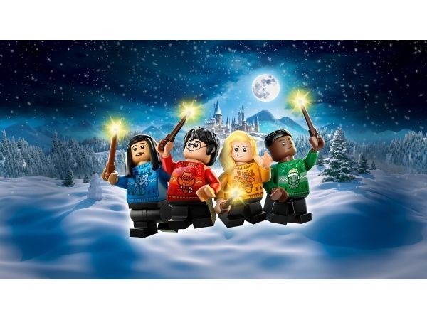 2. Åtte LEGO® minifigurer – Harry Potter™, Cho Chang™, Draco Malfang, Hanna Abom, Angelina Johnson, Lulla Lunekjær, Blaise Zabini og Fredrik Djervell, som alle har på seg julegenser og en tryllestav i hånden