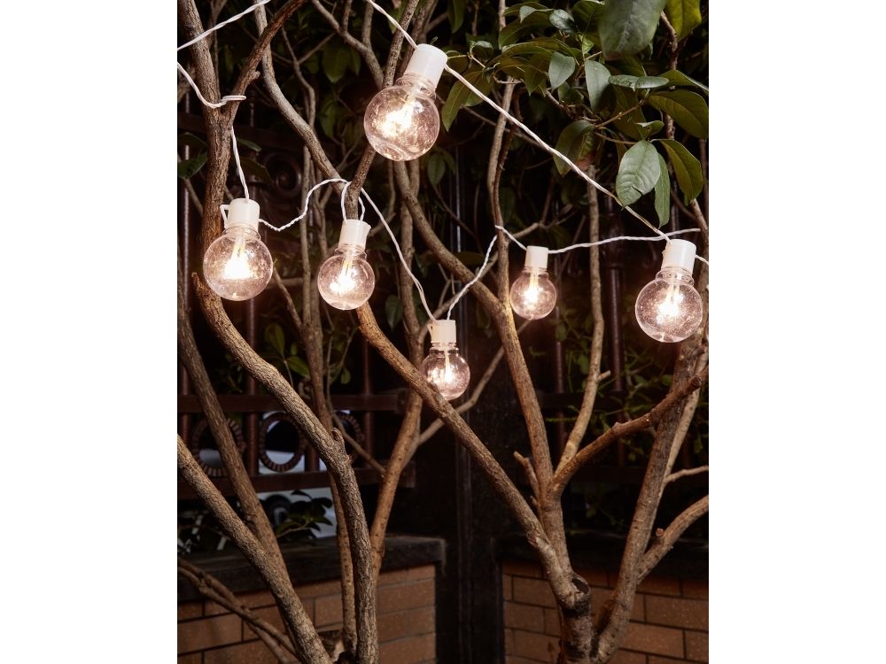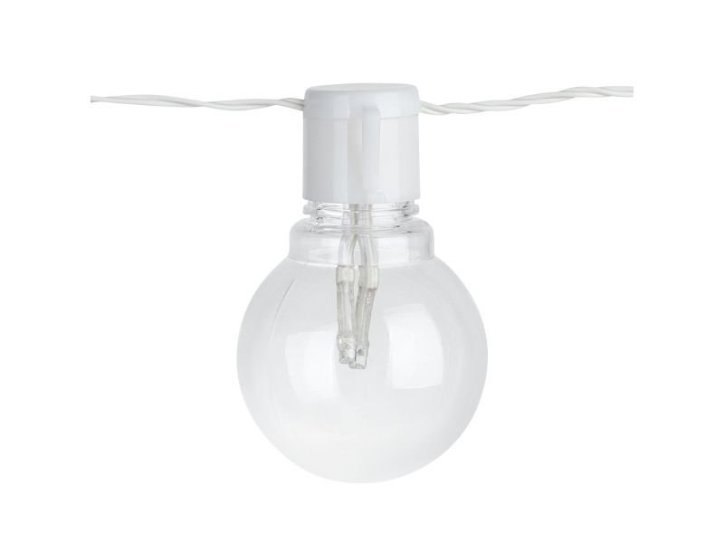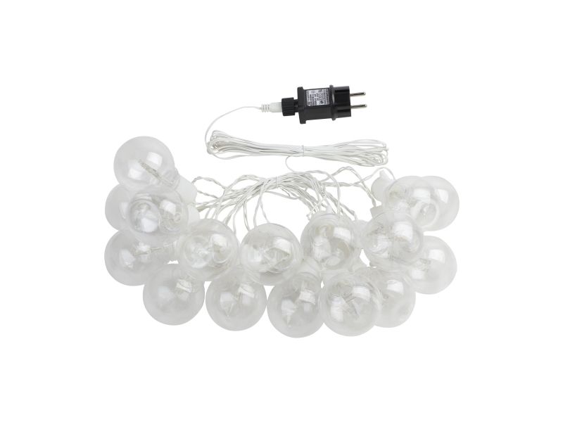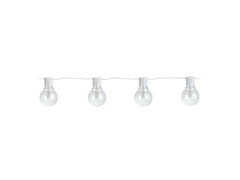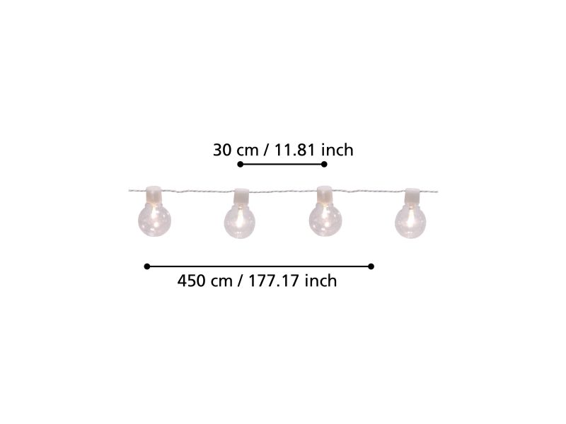 LED-lyskæden PARTAJ består af et klart 4,5 meter langt kabel, hvor 16 pærer hænger med en afstand på 30 cm mellem hver. Kabellængden fra stikket til den første lyskilde er yderligere 5 meter. De klare LED-pærer udsender et behageligt varmt hvidt lys. For at gøre ophængningen af lyskæden nemmere, er der kroge på lyskilderne. Takket være sprøjtbeskyttelsen IP44 kan den trygt bruges udendørs. Lyskæden er ideel som dekorativt element til terrassen eller balkonen, hvor den skaber en festlig stemning.