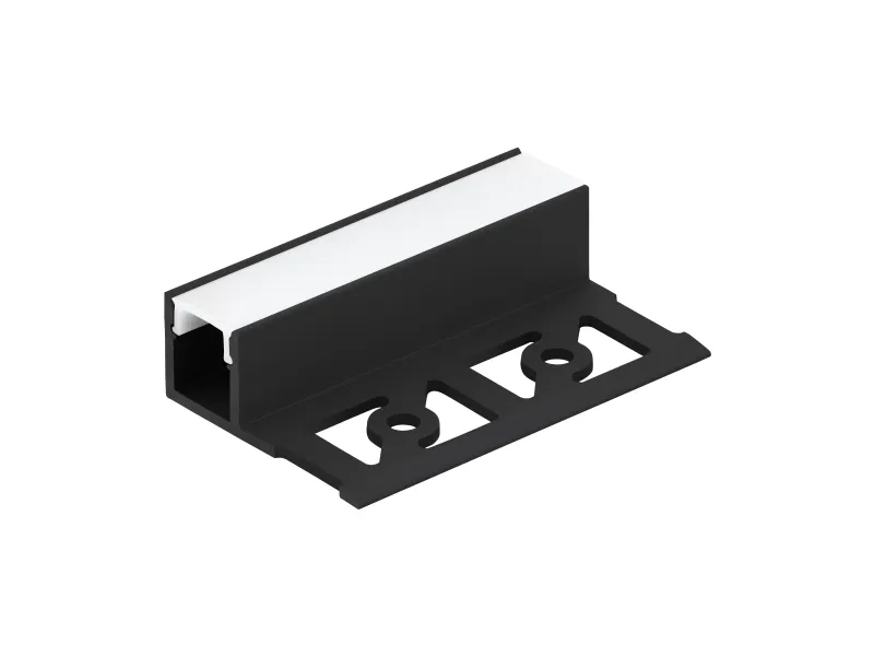 Indbygningsprofilen RECESSED PROFILE 4 er fremstillet af sort aluminium med en hvid plastikdækning og har en længde på 200 cm. Takket være den sidelæns vinge er dette profil ideelt til indbygning i flisegulve. Ved blot at lime en LED-stribe ind i profilen opstår en formfuldendt lyskilde, der skaber en behagelig atmosfære i dit hjem. Aluminiumsprofilen afkøler, beskytter og forskønner de anvendte LED-striber og giver dig gennem de forskellige valgmuligheder, som kan forbindes med hinanden, mulighed for en hurtig montering samt individuel rumindretning. LED-belysningen fremhæver dine opholdsrum og integreres takket være det elegante design sømløst i enhver moderne indretning. Den forsænkede profil RECESSED PROFILE 4 er fremstillet af sort aluminium med en hvid plastafdækning og har en længde på 200 cm. Takket være siderammen er denne profil ideel til montering i klinkegulve. Ved blot at lime en LED-strimmel ind i profilen skabes et velformet armatur, der fremtryller en behagelig atmosfære i dit hjem. Aluminiumsprofilen køler, beskytter og forskønner de anvendte LED-strips og giver dig mulighed for hurtig installation og individuelt rumdesign takket være de forskellige valgbare designs, der kan forbindes med hinanden. LED-belysningen sætter højdepunkter i dine boliger og passer takket være det elegante design problemfrit ind i enhver moderne indretningsstil.