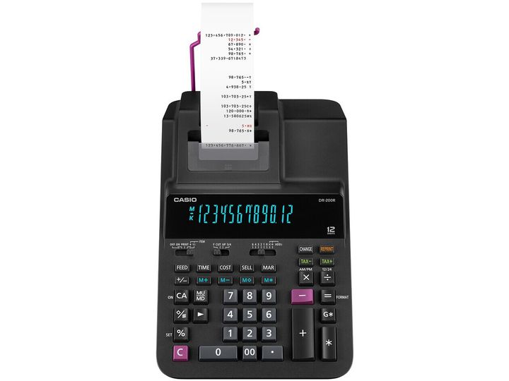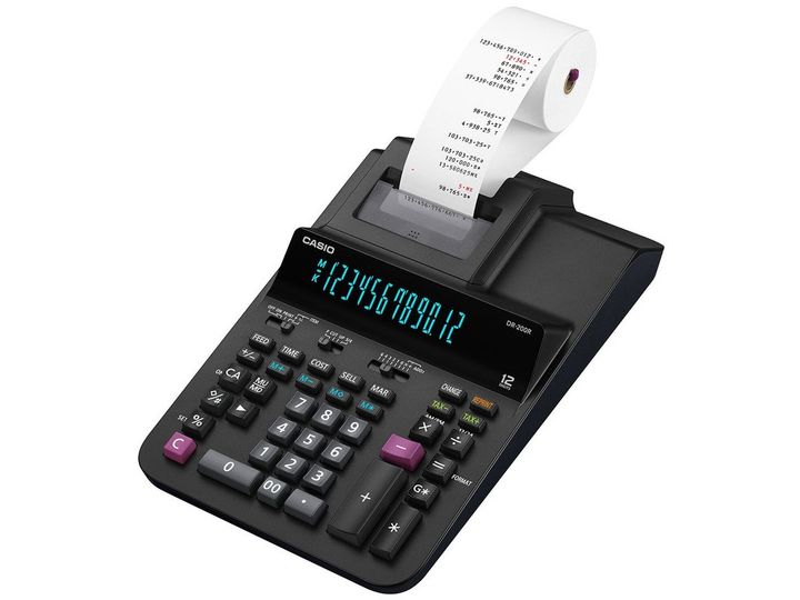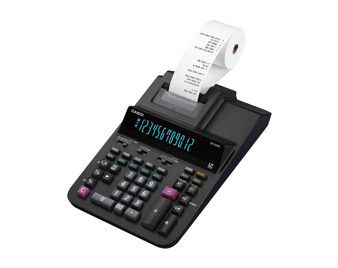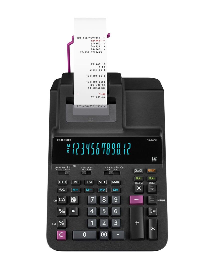 Casio DR-200R sort kalkulator - utskrift i 2 farger, funksjon for gjenutskrift, tax, 4,4 lin/sek - ingen batterier/kun kabel