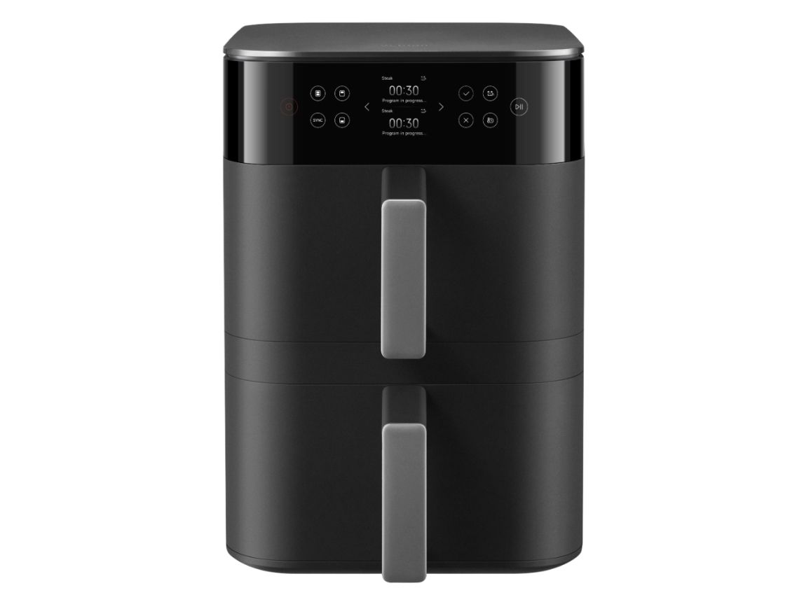 Free your hands Easy cleanup after meals Featuring a food-contact grade non-stick layer* so grease doesn't stick. The baskets and accessories are also dishwasher-safe for effortless post-meal cleanup.Xiaomi Smart Double Stack Air Fryer 12L. Product type: Hot air fryer, Capacity: 12 L, Temperature (min): 40 °C. Construction type: Double, Product colour: Black, Control type: Rotary. Display type: OLED. Power: 2800 W, AC input voltage: 220 - 240 V, AC input frequency: 50 / 60 Hz. Weight: 10 kg