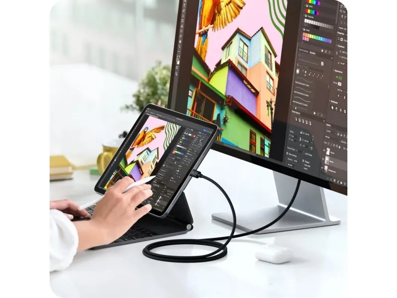 Built for modern high-performance setups the Satechi Thunderbolt 5 Pro Cable combines next-generation speed strong power delivery and advanced display support in one dependable connection. It is Thunderboltt?? certified for broad compatibility and consistent performance across supported devices.Thunderbolt 5 certified performanceUp to 120 Gbps bandwidth for demanding data workloadsUp to 240 W Power Delivery for high-power chargingAdvanced display support for high-resolution high-refresh monitorsDurable premium build with braided design and reinforced connectorsThunderbolt 5 certified performance Thunderbolt certification helps ensure reliable interoperability across Thunderbolt and USB-C ecosystems. Connect with confidence to compatible Thunderbolt 5 devices while maintaining support for Thunderbolt 4 Thunderbolt 3 USB4 and USB 3.2 and 3.1 for flexible everyday use. Up to 120 Gbps bandwidth for demanding data workloads Handle large files and intensive workflows with up to 120 Gbps unidirectional throughput and up to 80 Gb/s bidirectional throughput. This makes it well-suited for fast external storage creative production assets and performance-focused setups where bandwidth matters. Up to 240 W Power Delivery for high-power charging Support Power Delivery 3.1 EPR with up to 240 W charging designed for high-performance laptops and power-hungry devices. Charge and move data through a single cable without compromising on capability for supported hardware. Advanced display support for high-resolution high-refresh monitors Drive demanding display configurations including dual 8K video at 60 Hz or triple 4K at 144 Hz where supported by your device and setup. For macOS display output is supported up to 6K making it a strong choice for sharp fluid visuals in professional workspaces. Durable premium build with braided design and reinforced connectors Designed for daily use with premium materials including a braided cable exterior reinforced strain relief and an aluminum housing. The construction supports lasting flexibility and helps reduce wear at common stress points. Package includes1x Thunderbolt 5 Pro Cable - Black1x Product manualProduct specificationsBrand: SatechiCertification: Thunderbolt?? certifiedData transfer: Up to 80 Gbps bidirectional up to 120 Gbps unidirectionalPower Delivery: PD 3.1 EPR up to 240 WDisplay support: Up to 6K on macOS up to 8K on WindowsPort compatibility: Thunderbolt 5 Thunderbolt 4 Thunderbolt 3 USB4 USB 3.2 USB 3.1Cable length: 1 mColour: Black