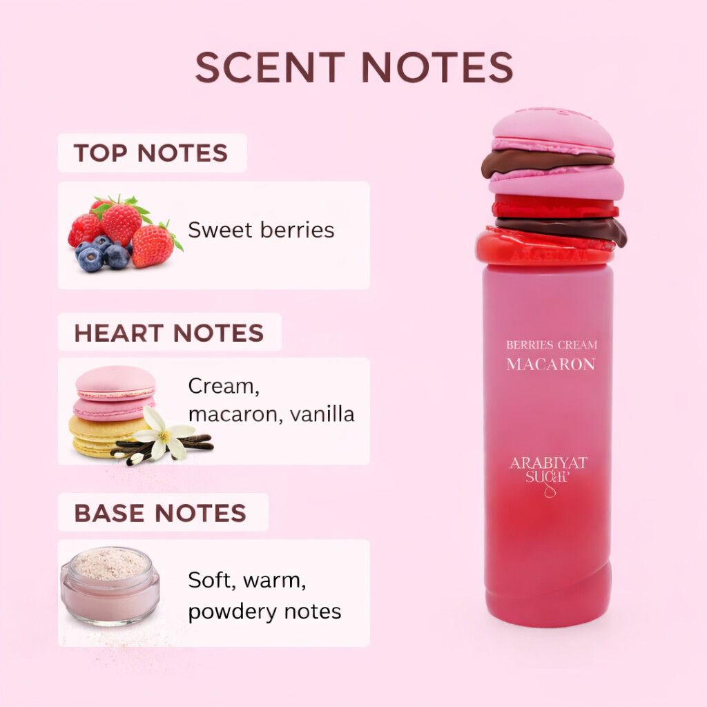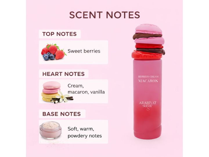 | Duftnoter: Toppnoter: Søte bær Midtnoter: Krem, makron, vanilje Basenoter: Myke, varme og lett pudderaktige noter |