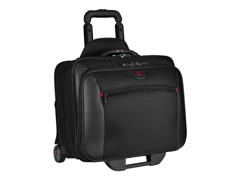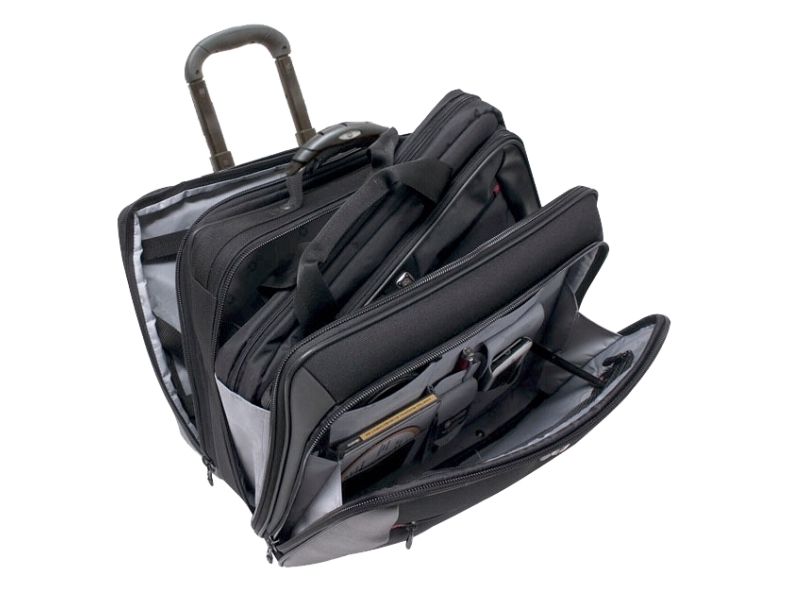 The Wenger POTOMAC 2-Piece Business Set with Comp-U-Roller is designed to meet the needs of the modern professional. This comprehensive carrying solution includes a notebook carrying case and a 15.4" laptop case, ensuring that your devices are always protected and ready for business. The set features lockable zips, padded interiors, and zippered compartments for enhanced security and protection of your devices. With the convenience of a telescopic handle and wheels, it offers effortless mobility, making it an ideal choice for professionals on-the-go. Whether you're commuting to the office or traveling for business, the Wenger POTOMAC set provides a versatile and secure way to carry your essential devices.
