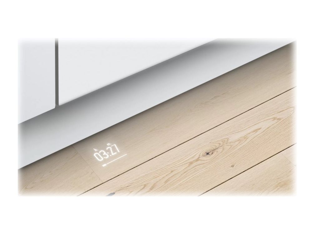Gulvet viser både gjenværende tid og programmet som går i oppvaskmaskinen.