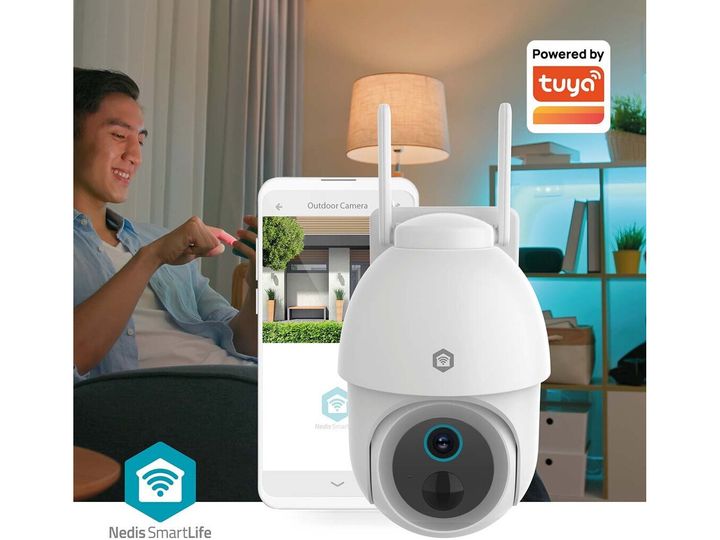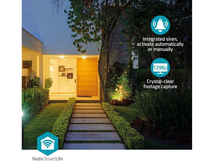 Thanks to its waterproof housing (IP65) the smart camera is protected from water, and can therefore be mounted to an external façade. The camera can be connected to your existing Wi-Fi network to monitor your house or garden and start recording with any sound or motion, whether you are at home or on the road. The Nedis SmartLife app notifies you in case of movement, so you can intervene in time.