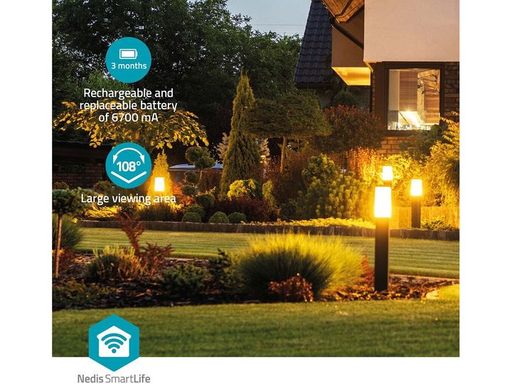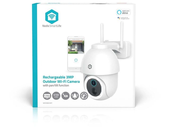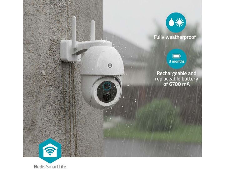This Nedis SmartLife Wi-Fi rechargeable pan and tilt outdoor IP camera allows you to see what’s happening around your house with an image quality higher than Full HD.