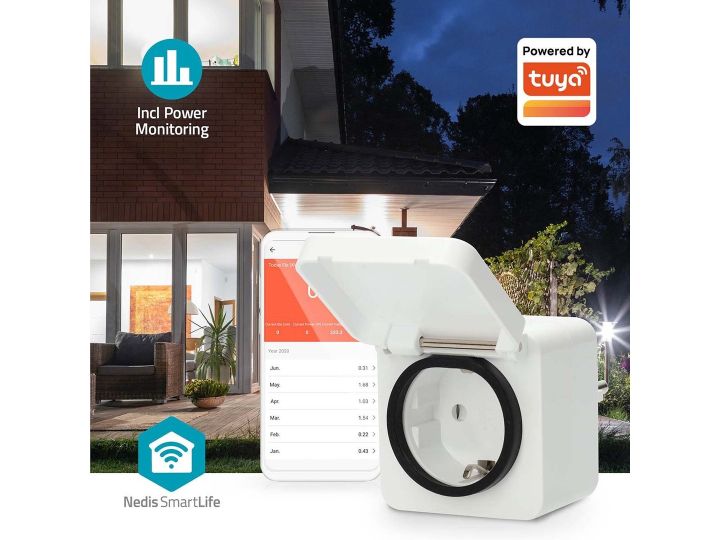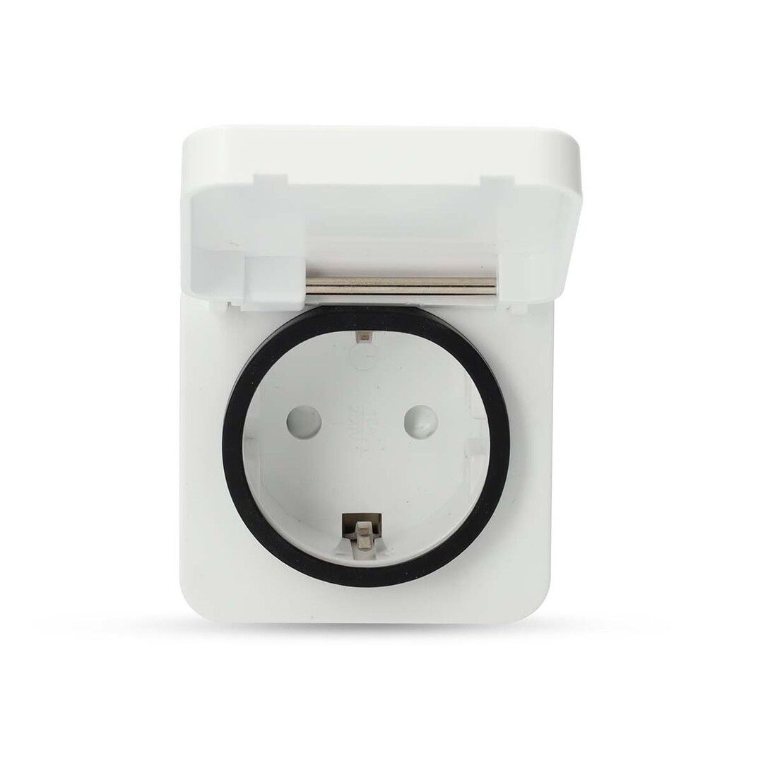 This smart plug is resistant to rain with its splashproof housing (IP44 when not in use) and can take temperatures ranging from -25 to 55 °C.