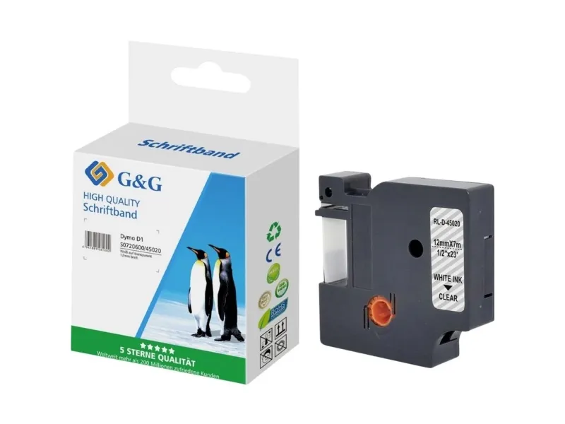 Kompatibel med DYMO D1/ 45020/S0720600 tape (12 mm x 7 m) hvid på transparent - mærke: g & G