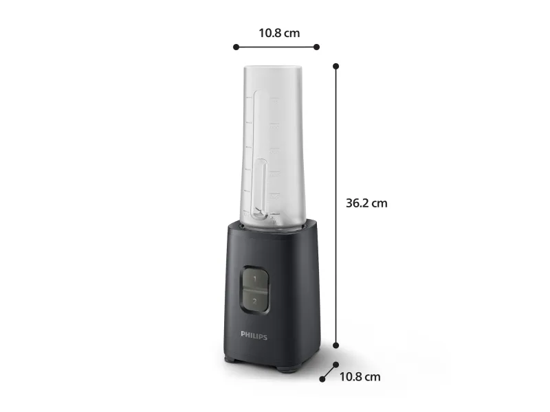 Philips HR2040/00. Type: Tabletop blender, Cord length: 0.85 m. Rotational speed (max): 25000 RPM, Control type: Buttons, Noise level: 86 dB. Housing material: Metal, Blade material: Stainless steel, Material jar(s): PP. Power: 350 W, Power source: AC, AC input voltage: 230 V. Width: 108 mm, Depth: 108 mm, Height: 362 mm