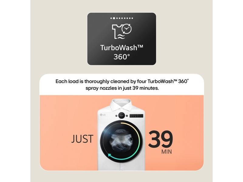 The LG F2X50S9TBB washing machine combines advanced features with user-friendly design for effective laundry care. Equipped with a durable stainless steel drum and a variety of washing programs, including Eco 40-60, TurboWash 360°, and AllergyCare, it caters to diverse fabric needs while maintaining energy efficiency. The AI DD technology optimizes wash patterns based on fabric types, ensuring that clothes receive an appropriate clean.