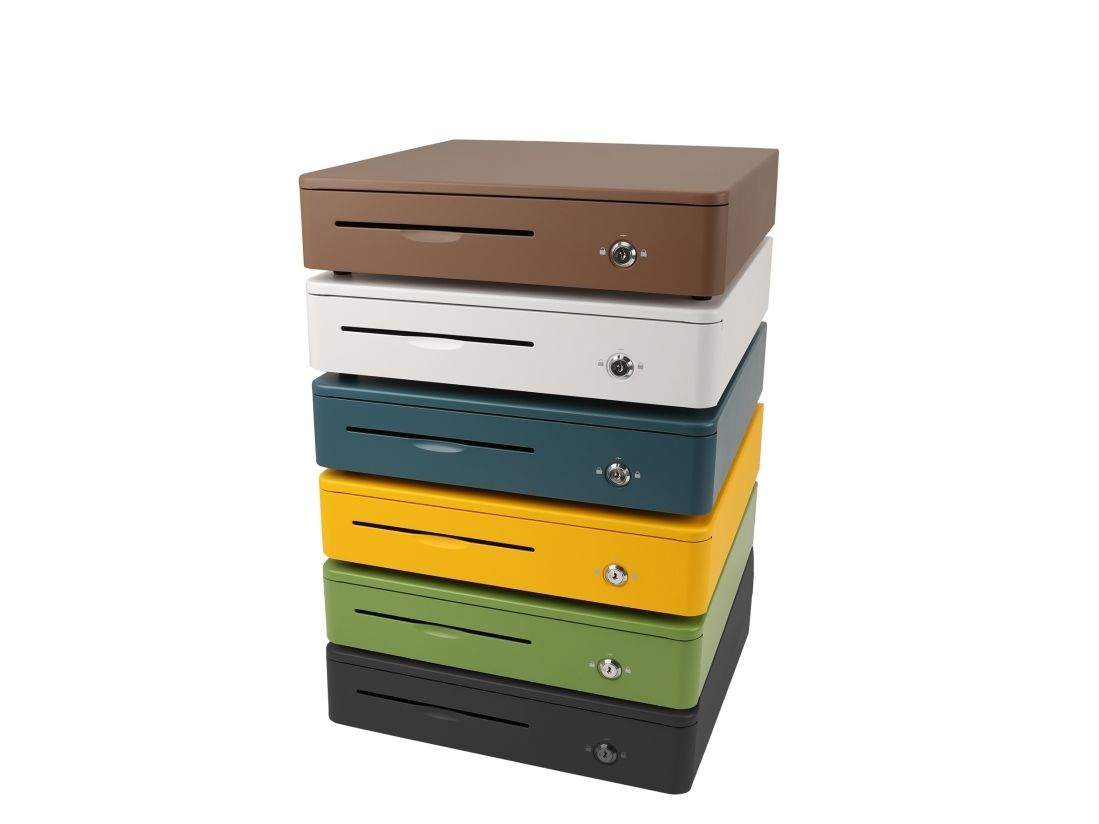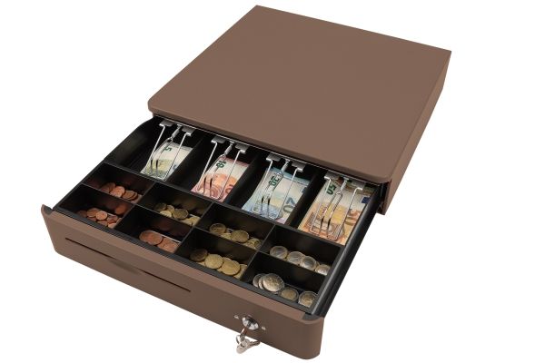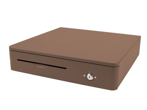 Cash drawer M 405 Color with 8 coin compartments and 4 note compartmentsOlympia M405. Product type: Electronic cash drawer, Housing material: Metal, Product colour: Brown. Width: 405 mm, Depth: 400 mm, Height: 102 mm. Number of keys included: 2 pc(s)