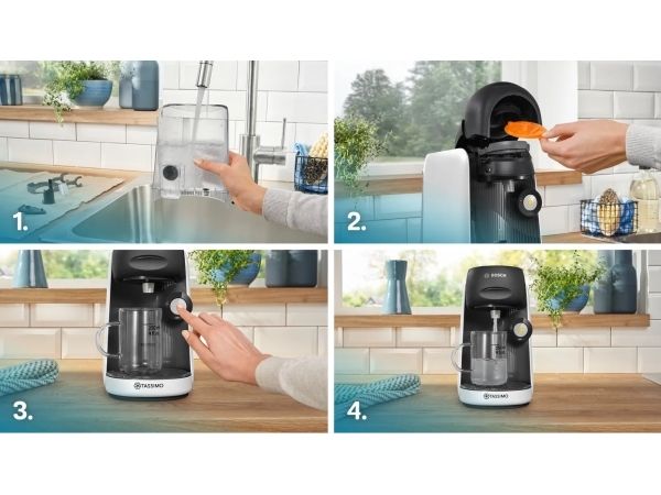 Bosch Tassimo Finesse TAS1640, Kapsel kaffemaskin, 0,7 L, Kaffekapsel, 1400 W, Svart, Hvit