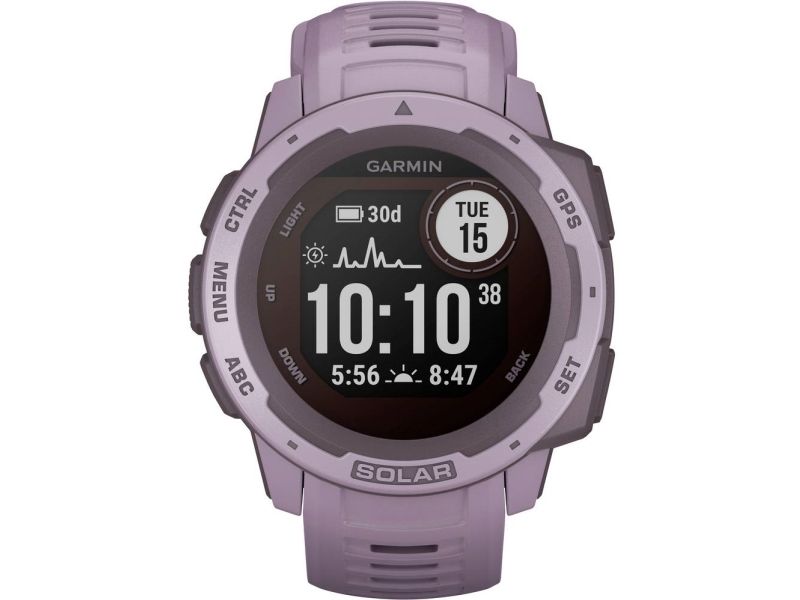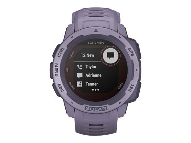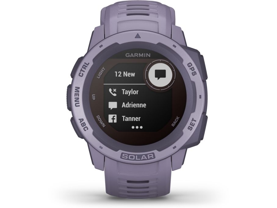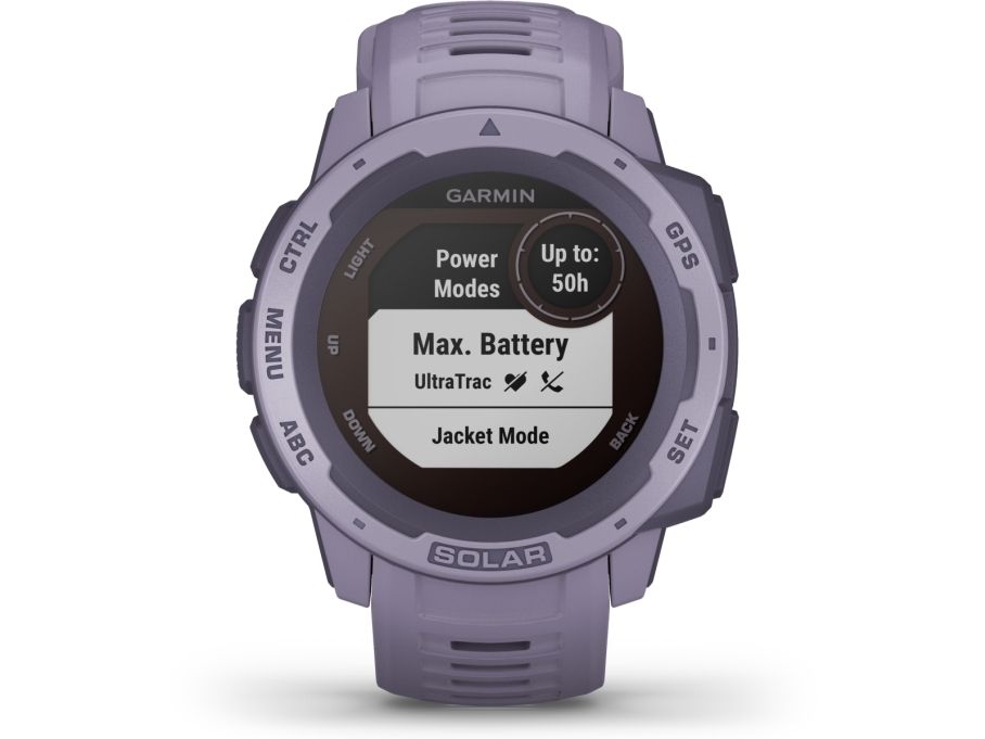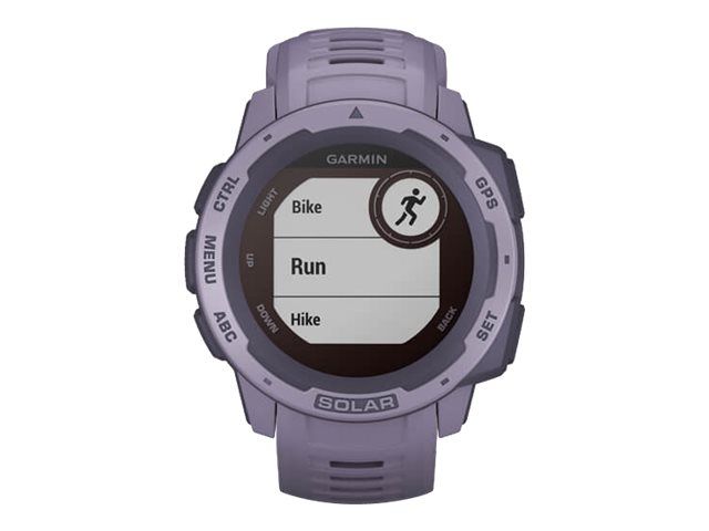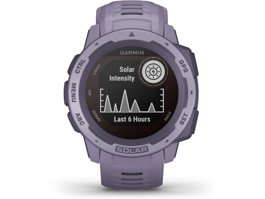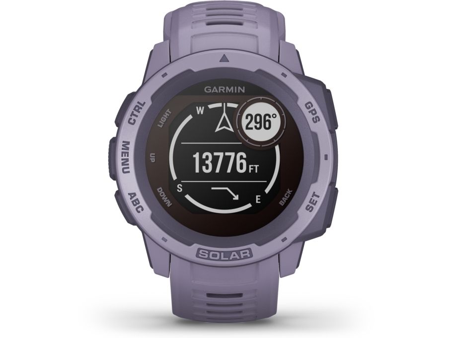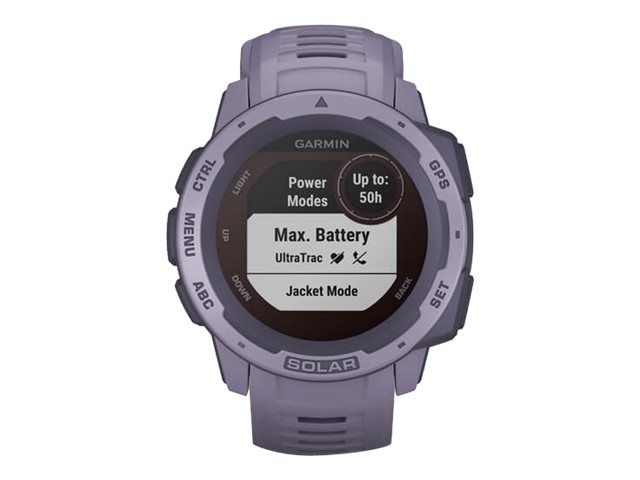 [OUTLET] - Garmin Instinct Solar - Sportsur med bånd - silikon - orkidé - håndleddstørrelse: 132-224 mm - monokrom - Bluetooth, ANT+ - 53 g