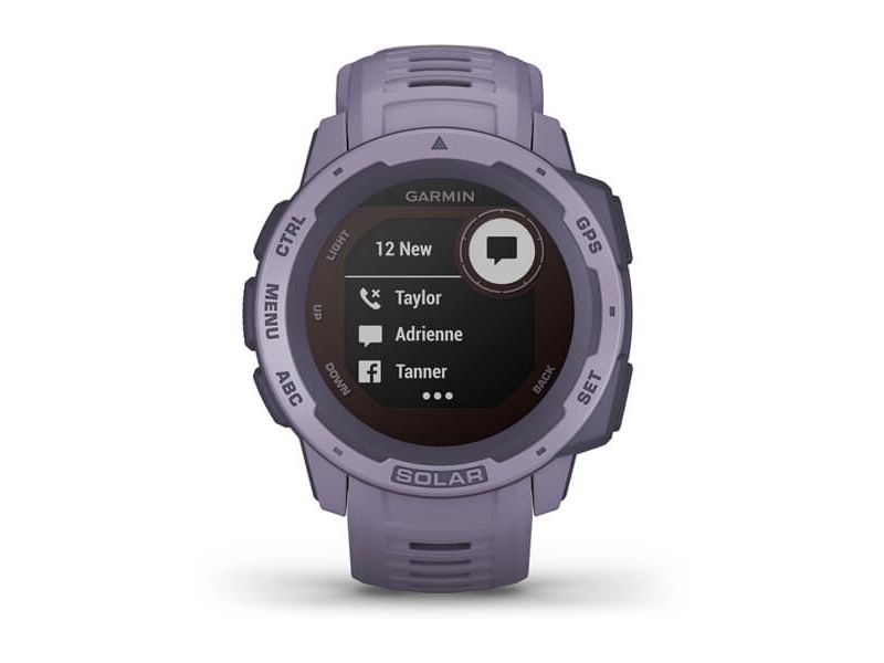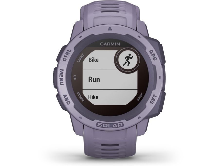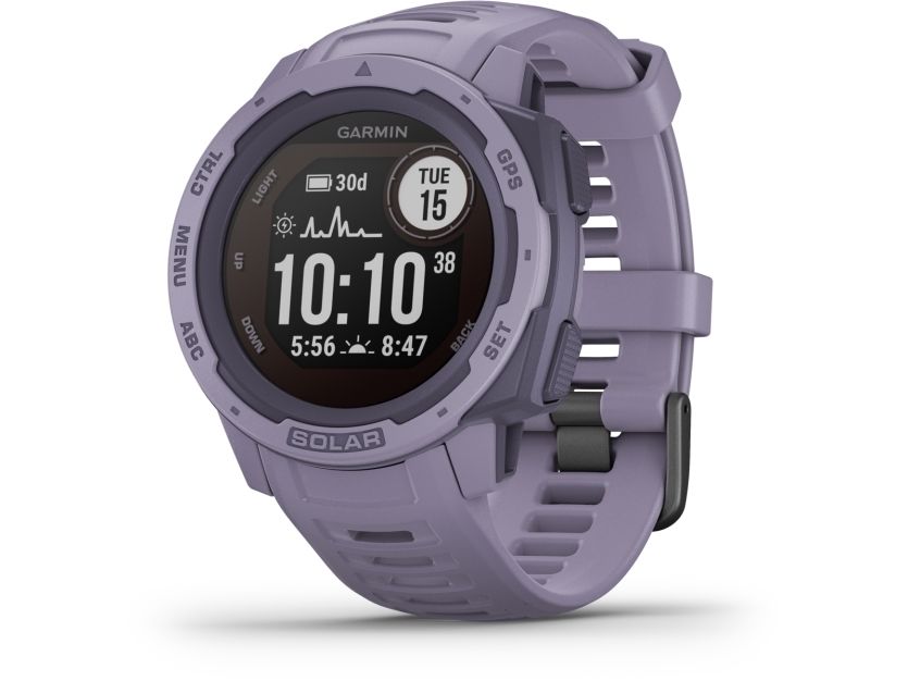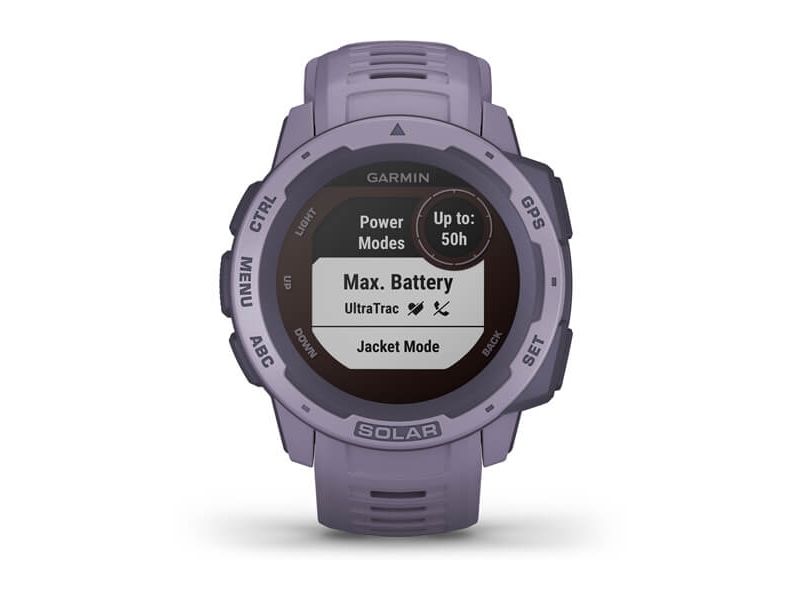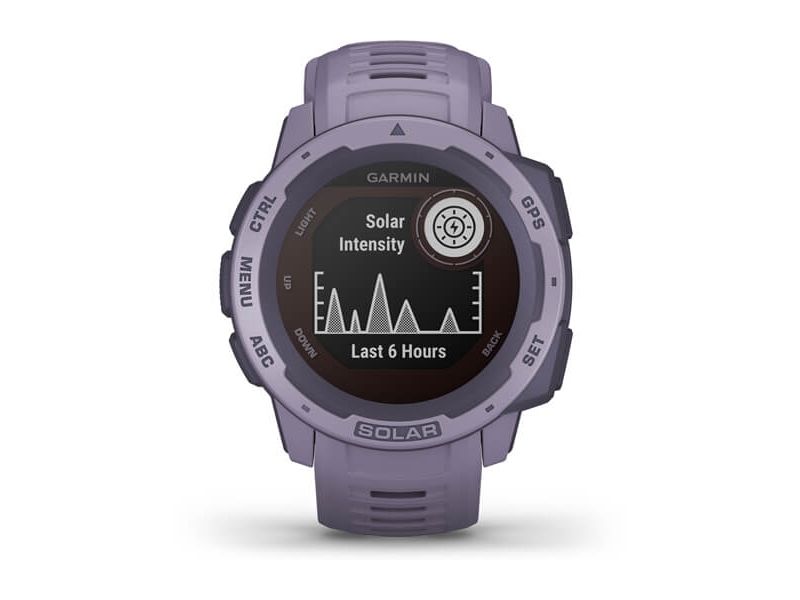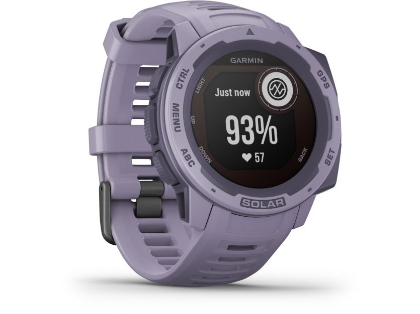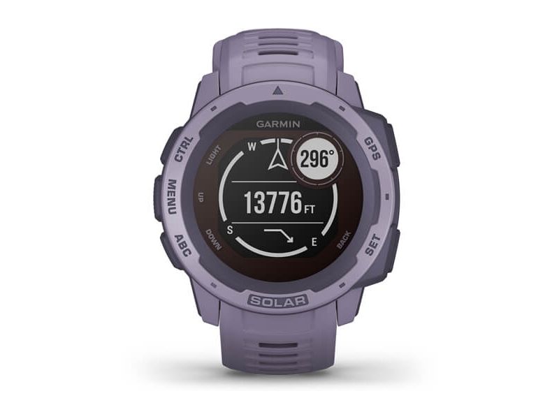 [OUTLET] - Garmin Instinct Solar - Sportsur med bånd - silikon - orkidé - håndleddstørrelse: 132-224 mm - monokrom - Bluetooth, ANT+ - 53 g