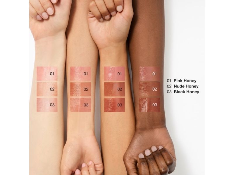 • De unike nyansene Black Honey, Pink Honey og Nude Honey ser unike ut på alle. Bruk den alene eller over din favorittleppestift.