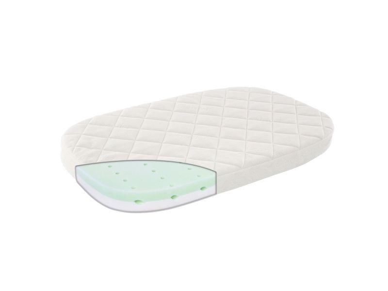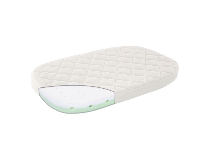 Anbefalet til børn fra 0-7 år Sikrer optimal liggekomfort takket være madraskerne i trykaflastende koldskum Komfortabel, 2-sidet, vendbar madras i koldskum tilpasset baby og større barn