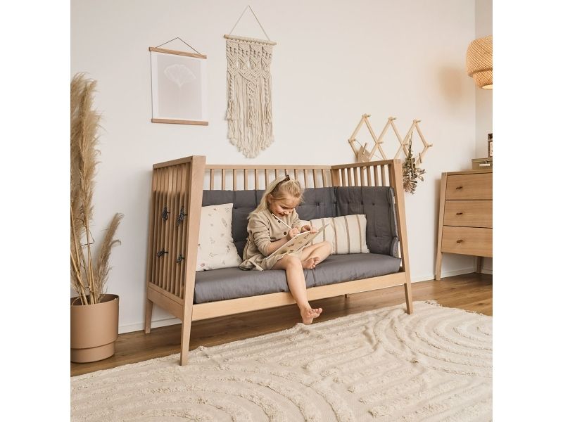 Egnet til børn i alderen 0-3 år 4 fleksible indstillinger, så sengen kan vokse med barnet - fra baby- til barneseng, og fra åben seng til sofa