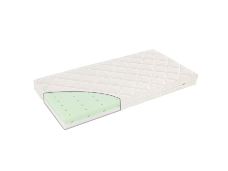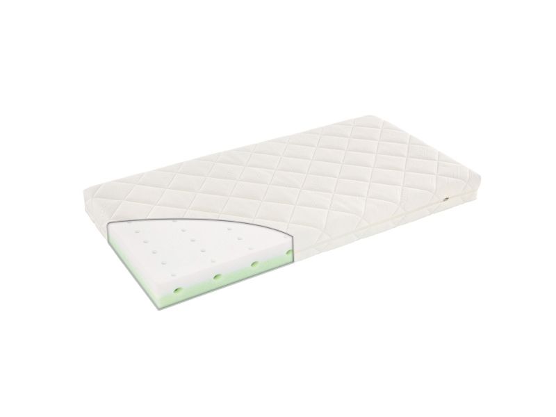 Anbefalet til børn fra 0-7 år Sikrer optimal liggekomfort takket være madraskerne i trykaflastende koldskum Komfortabel, 2-sidet, vendbar madras i koldskum tilpasset baby og større barn