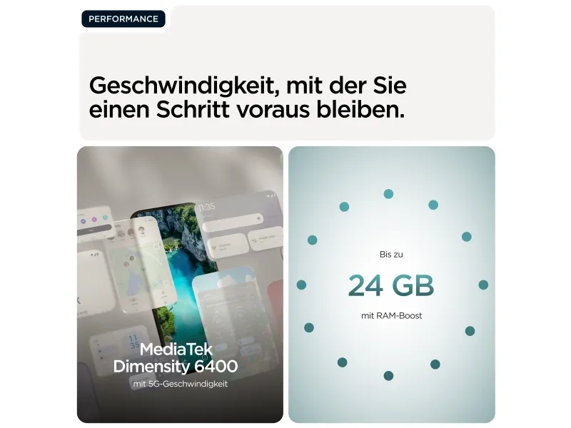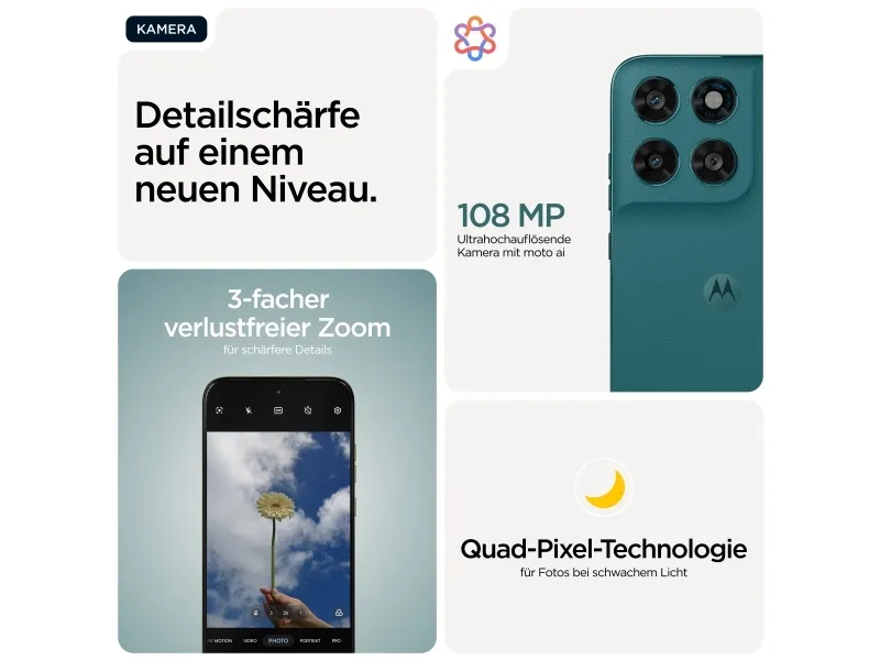 Motorola Moto G77-mobiltelefonen kombinerer kraftig ytelse med avanserte funksjoner for å forbedre brukeropplevelsen. Den er utstyrt med en 6,8-tommers OLED-skjerm og viser fantastiske bilder med en HD-oppløsning på 2772 x 1272 piksler. Oppdateringsfrekvensen på 120 Hz sikrer jevn rulling og sømløs grafikk, noe som gjør den egnet for spill og streaming. G77 drives av en 8-kjerners Dimensity 6400-prosessor med en klokkehastighet på 2,5 GHz og 8 GB RAM, og håndterer multitasking effektivt, mens 5200 mAh-batteriet med TurboPower-teknologi gir langvarig energi for daglig bruk og hurtiglading. Fotografer vil sette pris på det allsidige kameraoppsettet, med et 108 megapiksel hovedkamera, et 8 megapiksel ultravidvinkelobjektiv og et unikt 32 megapiksel frontkamera. Med flere kameramoduser, inkludert nattesyn, Ultra-Res og automatisk smilfangst, er det enkelt å ta fantastiske bilder. Moto G77 kompletteres av Dolby Atmos-lyd og avanserte sikkerhetsfunksjoner som ansiktsgjenkjenning og fingeravtrykksleser, og tilbyr både funksjonalitet og beskyttelse i et elegant og stilig design.