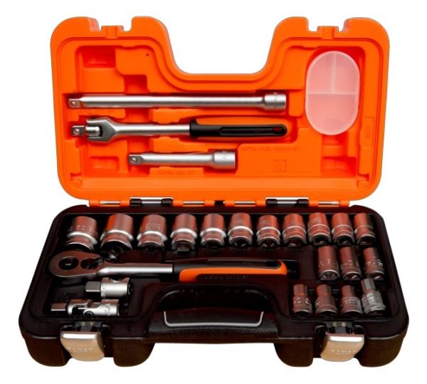 [OUTLET] - Bahco Pipenøkkelsett 1/2”, metrisk, Støpselsett, 1/2", Metrisk, 18 hoder, 10,11,12,13,14,15,16,17,18,19,20,21,22,23,24,27,30,32 mm, Stål