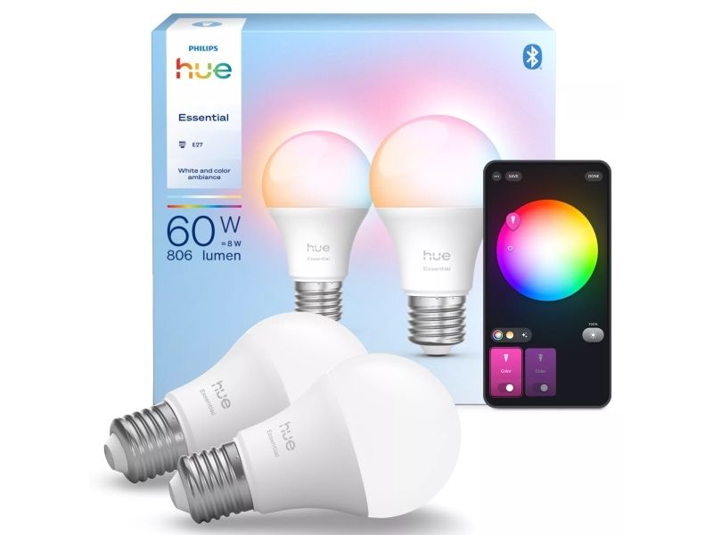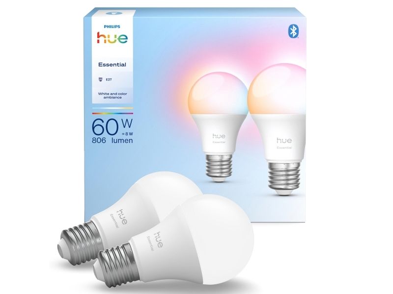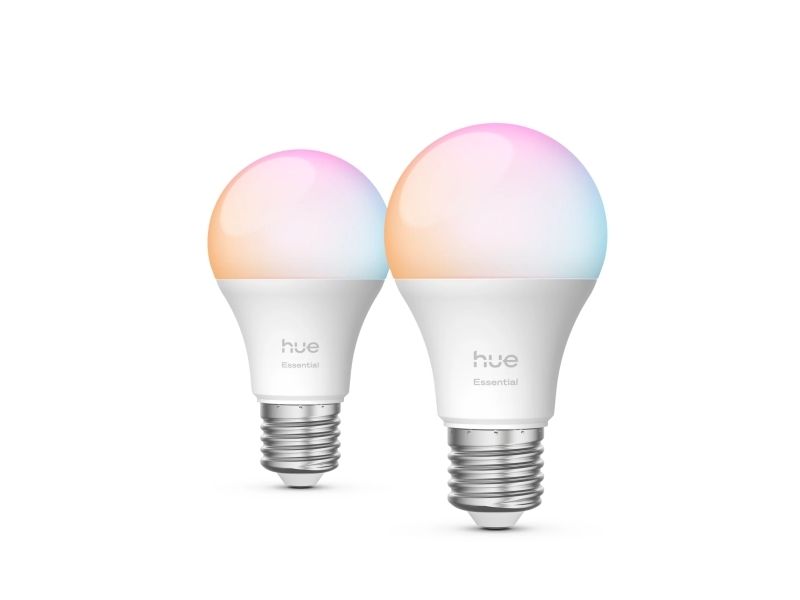 Philips Hue White and Color Ambiance Essential - LED-lyspære - form: A60 - E27 - 8 W (ekvivalent 60 W) - klasse F - varm til kjølig hvitt lys - 2200-6500 K (en pakke 2)