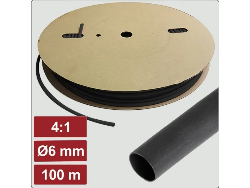 Krympeslange-metervare 100 m Krympningshastighed: 4:1 Sort Nominel-diameter (inden krympning): 6 mm