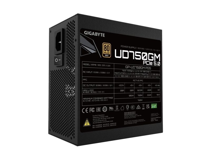 [OUTLET] - Gigabyte UD750GM PG5, 750 W, 100 - 240 V, 12 A, aktiv, 105 W, 732 W