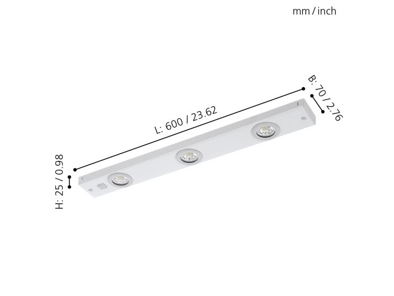 [OUTLET] - Eglo Kob LED - Underskapslys - LED x 3 - total: 6.9 W (ekvivalent 78 W) - varmt hvitt lys - 3000 K - hvit
