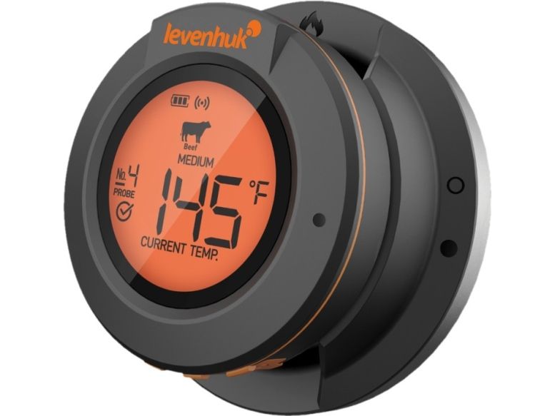 Accuracy is the key advantage of the Levenhuk Wezzer Grill BT40. It measures ambient temperature in the range of +30°C to +400°C and meat temperature from 0°C to +300°C. The margin of error is minimal at no more than ±2%. You can also use the thermometer as a handy countdown timer for nearly 12 hours.