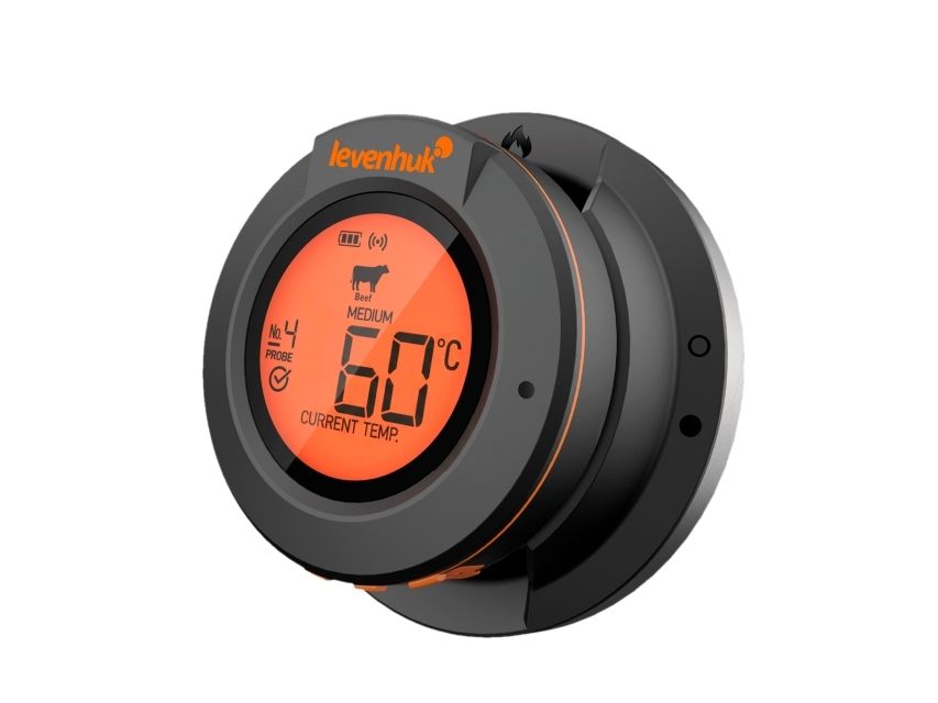 The Levenhuk Wezzer Grill BT40 is your personal grilling assistant. Simply install it in your grill lid in place of the original thermometer, and it will start carefully monitoring everything inside. With it, you’ll always know exactly how well done your steak or chicken fillet is, and you can control the heat under the lid so your dish turns out just as you intended: tender, juicy, and appetizing.