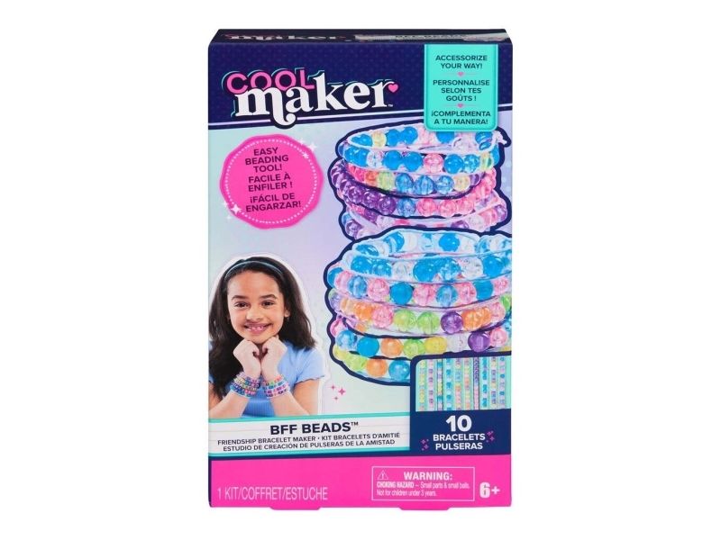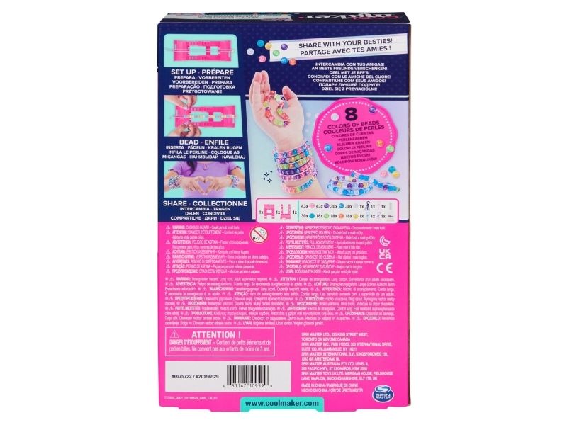 Bli en hverdagsskaper med Cool Maker BFF Perler Vennskapsarmbåndsmaskin. Dette komplette armbåndssettet inneholder alt barn trenger for enkelt å lage 10 stilige vennskapsarmbånd, inkludert 230 perler, fire farger på snor og en miniarmbåndsmaskin. Det er enkelt å perle med settet: mål håndleddet ditt, plasser en snor i studioet, tre perlene på snoren og klipp til. Med åtte forskjellige farger på gjennomsiktige perler å velge mellom, kan barn tilpasse og designe armbånd akkurat slik de vil, og bruke eller dele dem med vennene sine. Enten du ser etter morsomme aktiviteter for barn til overnattingsfester, bursdager, skolestart, regnværsdager eller hverdager, er Cool Maker-hobbysett for barn et flott tilskudd til perlesett og kreative materialer. For flere måter å skape med Cool Maker på, se etter Stack’d Heishi Armbåndsmaskin og andre sett som Stilige Vindspill, Hjerteformet Håndveske og mer (selges separat). Lag fargerike vennskapsarmbånd med Cool Maker BFF Perler Vennskapsarmbåndsmaskin.