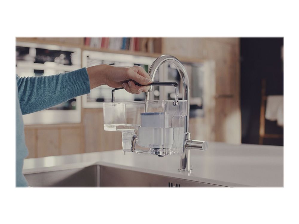 The ion-exchange technology removes calcium from the water before entering your coffee machine, thus preventing its formation. If the filter is replaced timely at machine request, you can enjoy up to 625 cups with each filter.