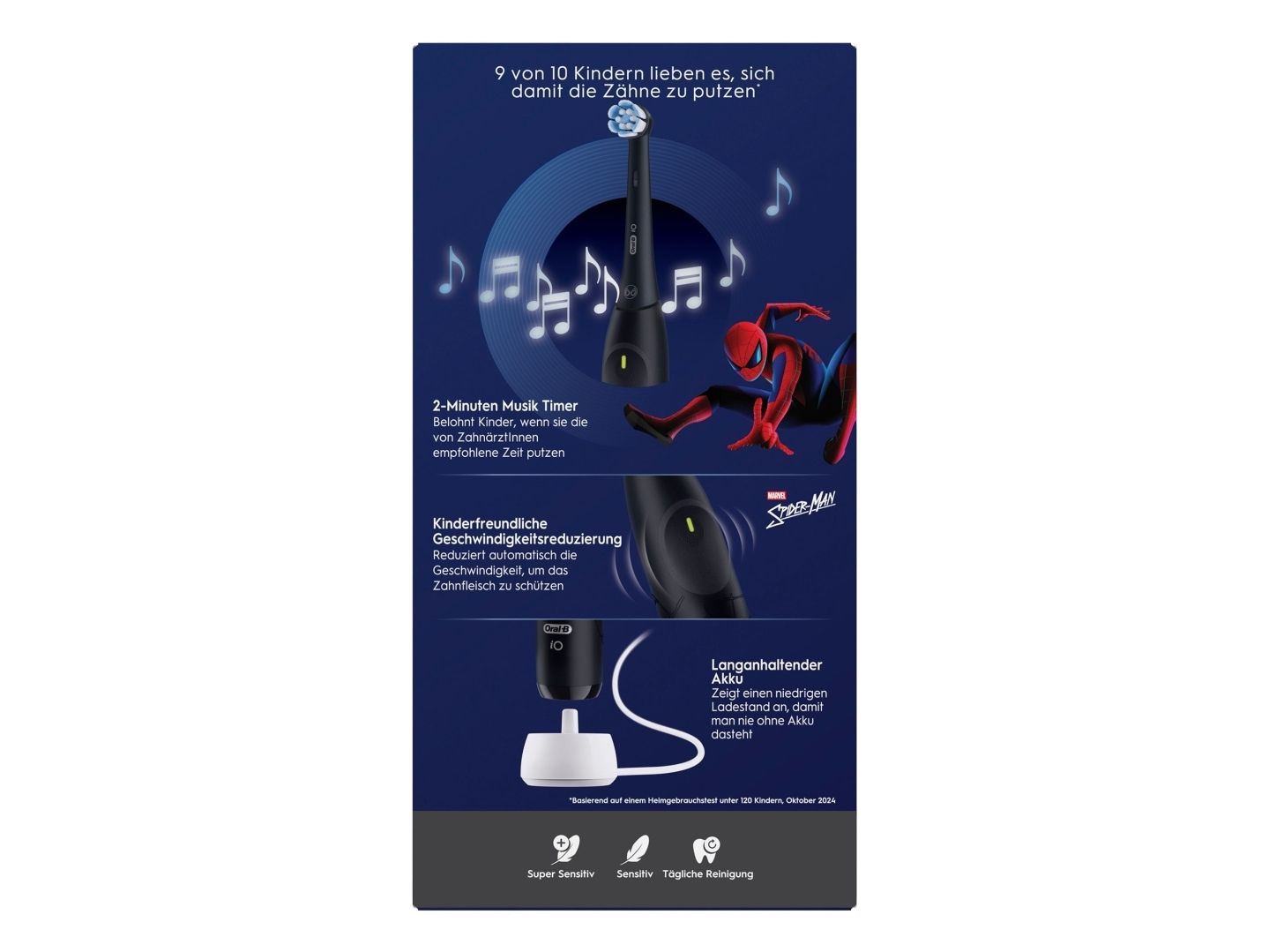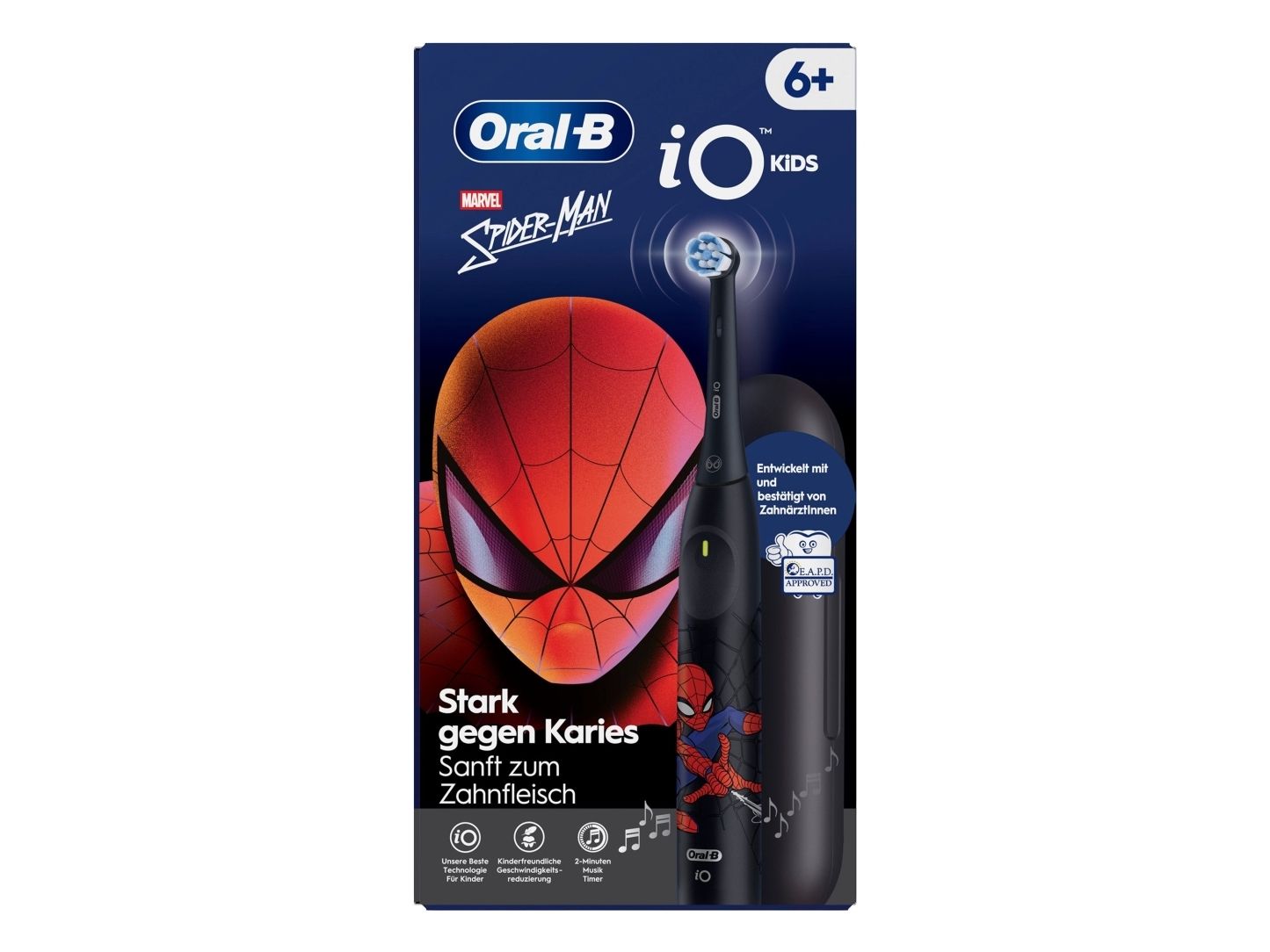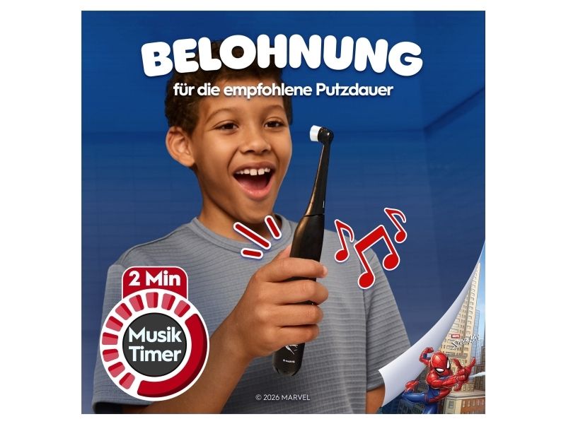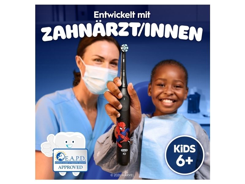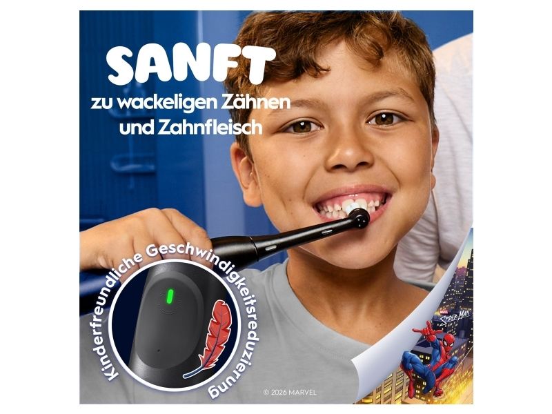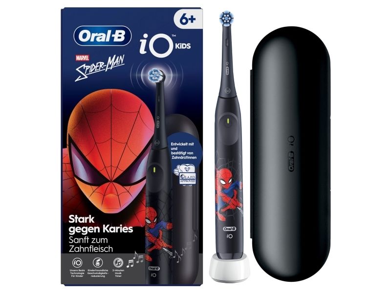 Oral-B iO Kids Spiderman, Barn, Roterende Tannbørste, Daglig stell, Sensitiv / Myk, Super sensitive, Svart, 2 min, Svart